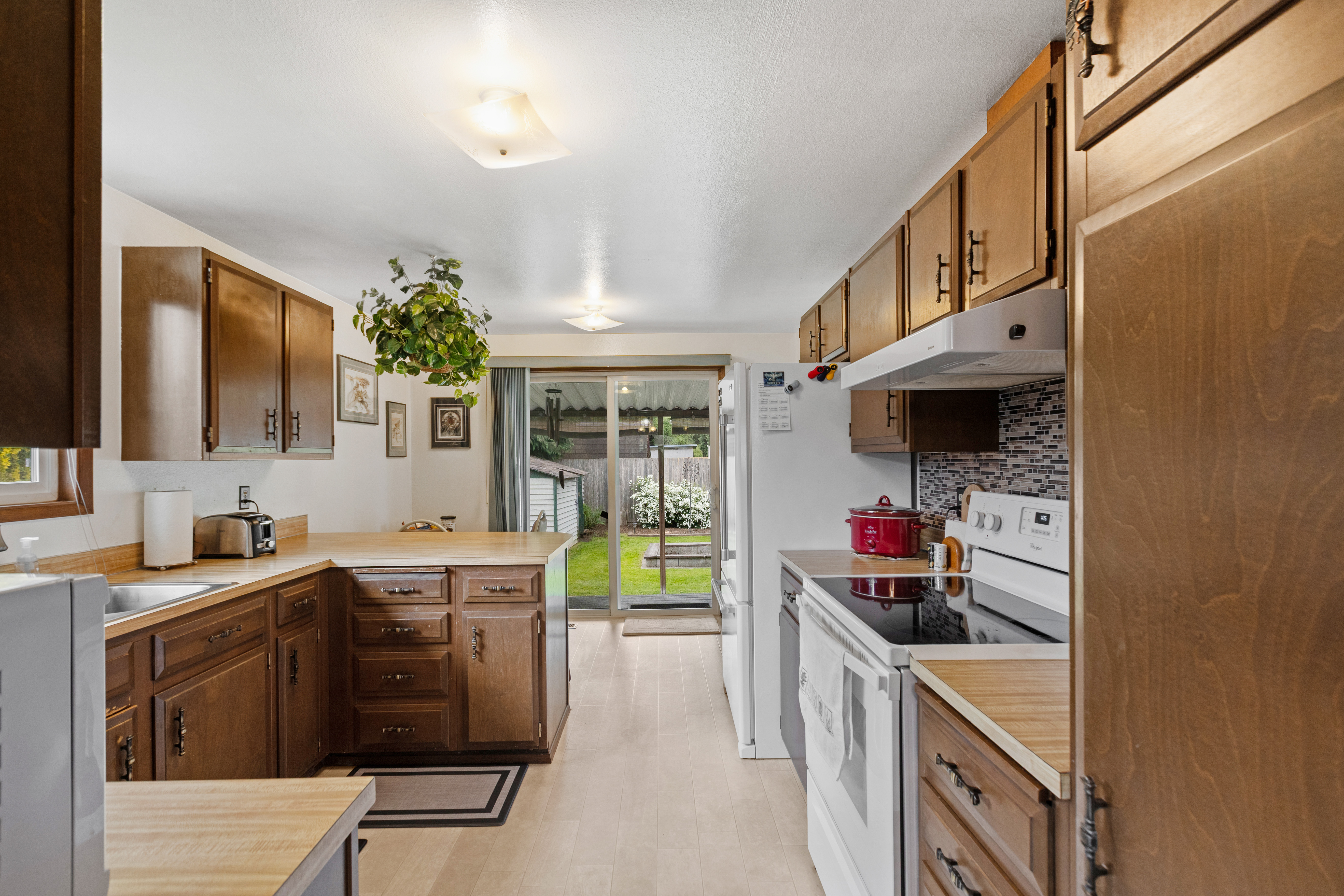 Unlock the potential of this well-built home, ready for your vision! Enjoy a bright living room with a propane fireplace and large window, plus a kitchen with an inviting eating bar. Enjoy generous living space with four bedrooms plus a dedicated office, offering both comfort and versatility. Stay cozy year-round with a heat pump and A/C. Recent upgrades include a durable 50-year roof, newer plumbing, and a main septic line. Step outside to a fully fenced backyard with mature landscaping, a firepit, a covered patio, and a storage shed. Conveniently located near shopping, entertainment, and easy I-5 access!